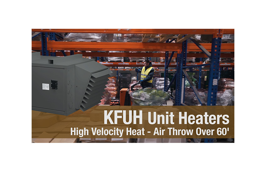 King’s KFUH, high velocity unit heater is perfectly suited for high ceiling applications such as warehouses, with an air throw of over 6- feet. The 3-speed, high-capacity motor and blower quietly delivers large volumes of air ranging from 775 to 1540 CFM minimum.