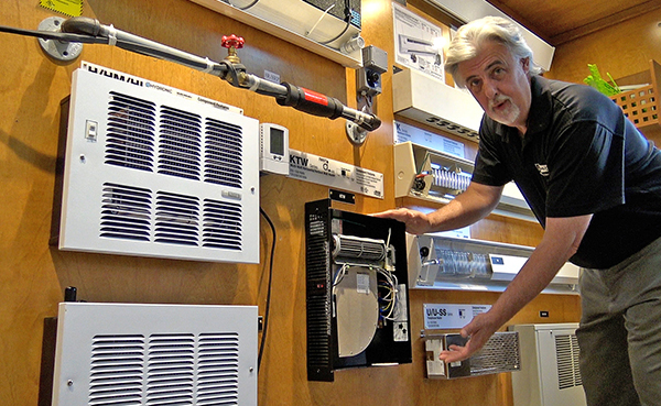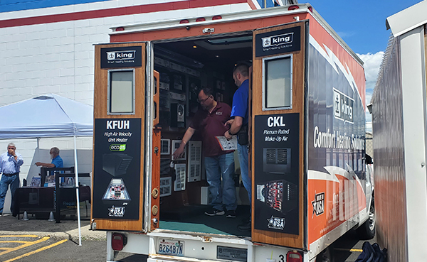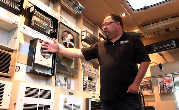 Inside each demo van, you’ll find dozens of King heaters and line voltage electronic thermostats, all powered up and ready to go. We demonstrate: