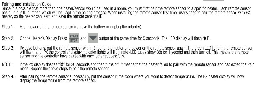ECO2S Support – How To Pair the ECO2S Remote Sensor to the PX ECO2S Heater How To Pair ECO2S remote temperature sensor to PX ECO2S Related Articles ECO2S Support Home Page Pairing A Sensor How To Pair Sensor with PX ECO2S How To Pair Sensor with LPW ECO2S How To Pair Sensor with KB ECO2S+ Setup For 1-Stage Heating How To Setup an ECO2S Heater as a 1-Stage Heater Error Codes Error Codes – Troubleshooting Can’t find your answer in our support center? Contact us directly.