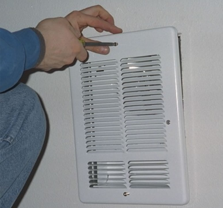 Move wiring to left and insert interior into wall can and screw interior at top of can.
