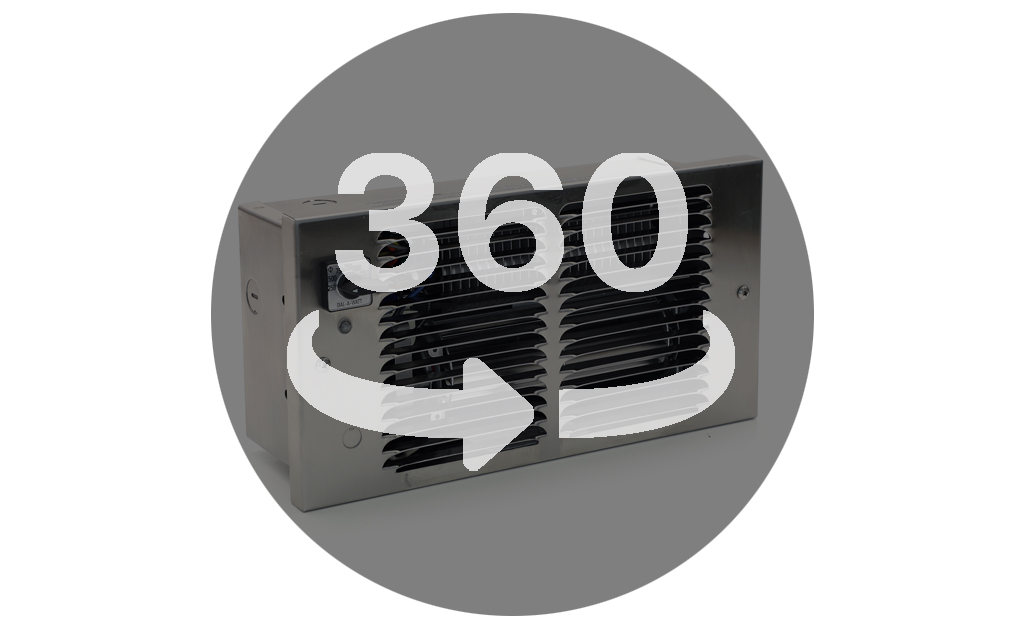 A heater unique to King, featuring the ability to choose the wattage needed. A heavy-duty industrial switch mounted on the grill allows quick selection of up to 7 different heat settings. Use where higher wattage is not required during unoccupied periods. Typical installations are toll booths, motor home/RVs, pleasure craft and cabins. By providing air movement and dry heat, musty, moldy odors are reduced and interior fabric life is maximized. Utilizing a lower wattage provides winter freeze protection with the bonus of energy savings. During RV use, the heater load (Amperage) can be adjusted to the receptacle or cord size. This prevents damage to plugs and receptacles due to overloading. During lay-up periods, wattage can be adjusted to the correct level. Quiet operating tangential cylindrical (squirrel cage) blower and commercial grade element make the Dial-A-Watt™ the heater of choice for people on the move.