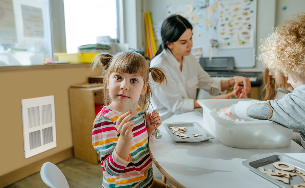 The EFW-LD heater was designed specifically for Assisted Living Facilities, Daycare Centers, Memory Care Centers, or any facility that has high risk occupants, where temperatures should not exceed 120 degrees. These facilities can benefit from replacing high density heaters, especially where required by code to keep their patients safe. Heaters can be ganged together to work on one thermostat if higher output is required.