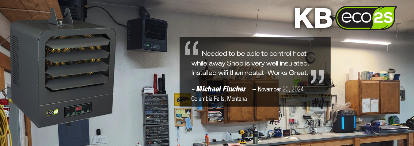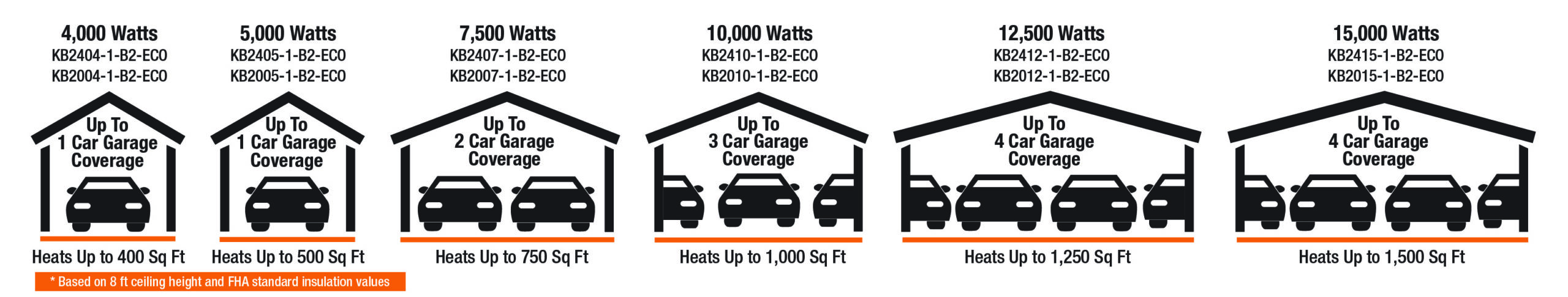 Contractor shall supply and install KB ECO2S Series garage heaters manufactured by King Electrical Mfg. Company. Heaters shall be of the wattage and voltage as indicated on the plans.