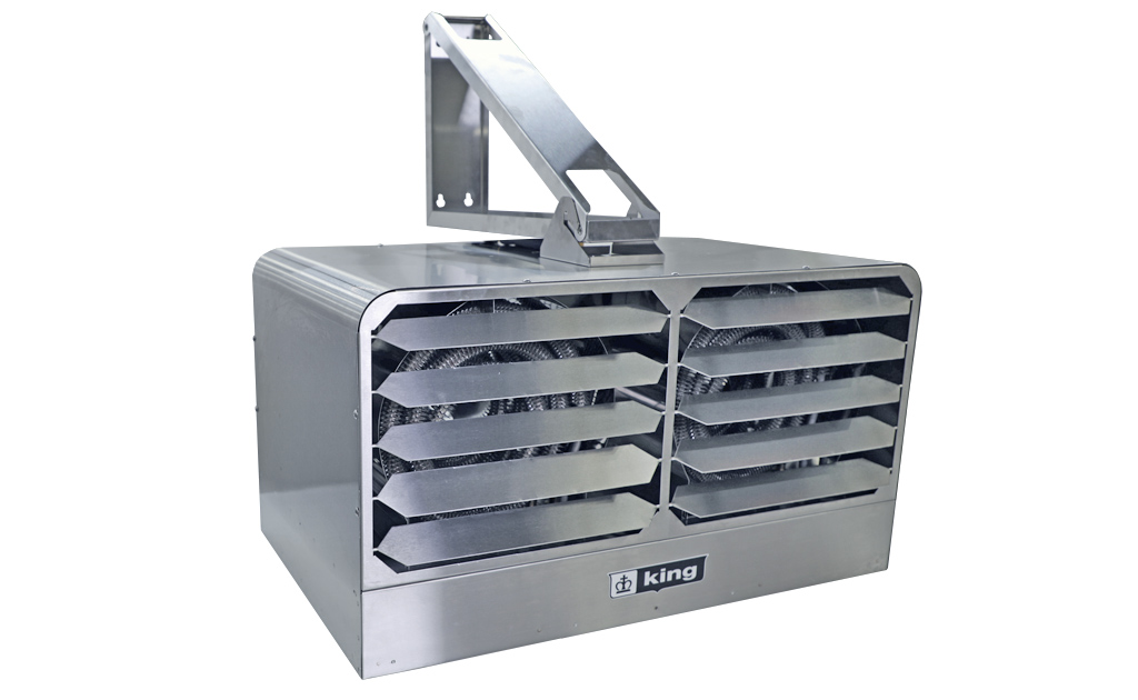 KBS unit heaters are specially constructed for heating of, and freeze protection in, dirty, dusty or corrosive areas requiring periodic washing or hose-down. Typical places of use are: waste water treatment plants, car/truck washes, cement plants, steel mills or such, canneries and dairy facilities, ship and marine docks, fish processors and load banks for generators. The heater is constructed from 20-gauge type 304 Stainless Steel and elements making it extremely corrosion resistant. The N.E.M.A. 4 wiring compartment is sealed and gasketed making it water tight. All optional control components are U.L. listed for use in N.E.M.A. 4 enclosures.