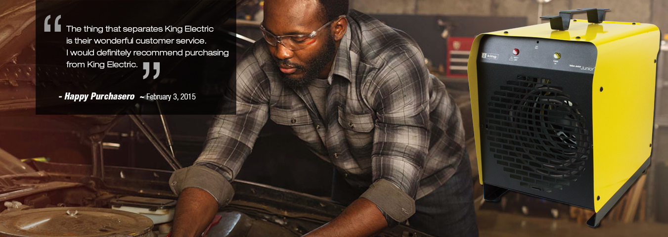 The PSH Yellow Jacket Junior is a 3750W high power portable heater designed to provide a back-up heating source at an affordable price. Perfectly suited for the workshop, garage or construction sites. The convenient 6 foot cord allows greater mobility to areas needing heating, while the handle serves as a reel for the cord when not in use. Easily set the desired temperature with the built-in thermostat. Sure stop high-limit temperature control with manual reset provides overheat protection. With a 300 CFM fan, heat is dispersed efficiently.