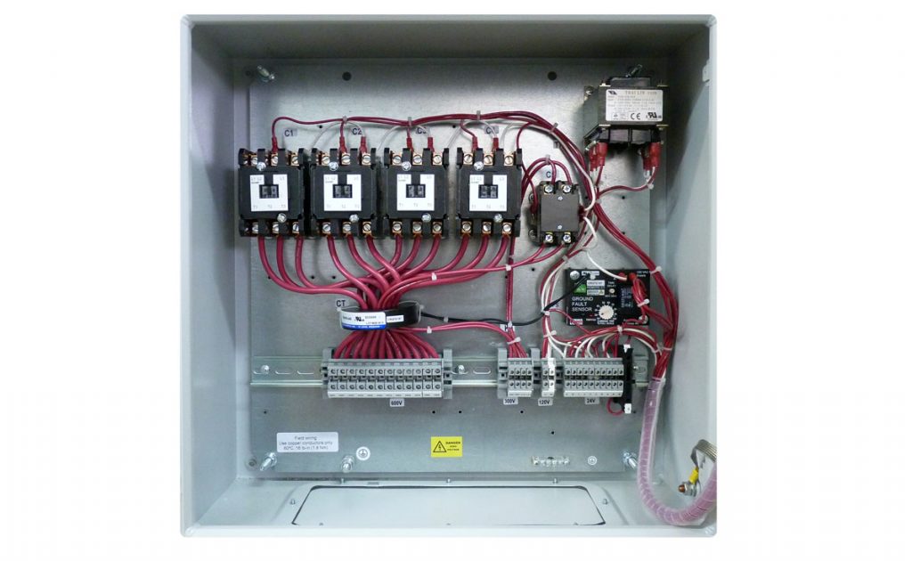 - Up to 4 Zones, with 2-50A/3P Contactors, 3-Phase 600V Max + 1 Zone Auxiliary Controller, 1-50A/1P Contactor, 1-Phase 300V Max