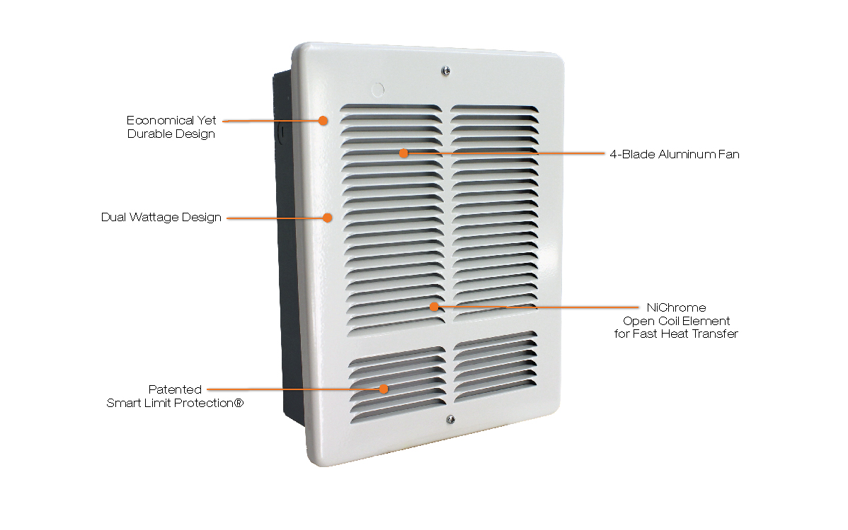 An efficient and affordable solution to add warmth to living spaces. By combining an efficient impeller style fan with a NiChrome heating element, the W heater delivers instant heat in even the draftiest locations. Have peace of mind that the heater Includes our patented Smart Limit Protection safety shutoff feature.