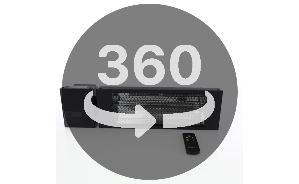 Featuring an integrated, built-in controller, selecting between the 2 different heat levels, or setting a 24 hour timer to only heat the space while you are using it, is easy. And with the simple hand-held remote control, comfort is always in the palm of your hand.