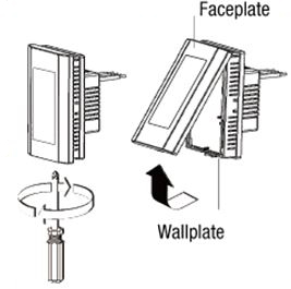 To reattach, carefully hook the faceplate on the top edge and lower down to secure at the bottom, ensuring to tighten the screw once again.