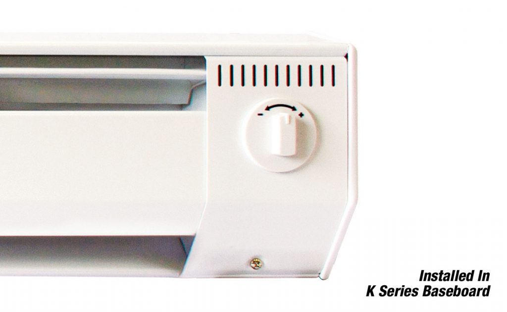 Replacement thermostat for electric baseboard heater models K & CB. Available in single pole or double pole thermostat models and made to accompany the K-Series baseboard heater. This thermostat connects to the heater for superior temperature control. Flexible Hook Up, choose the side of the baseboard heater you want to install this thermostat on and wire it according to the manufacturer instructions. Designed for left or right mounting. With heating from 40-90 degrees F. Everything you need is included so you don’t have to order extra parts. It comes with the thermostat, knob & j-box.