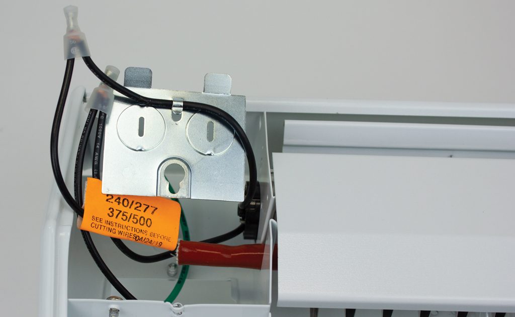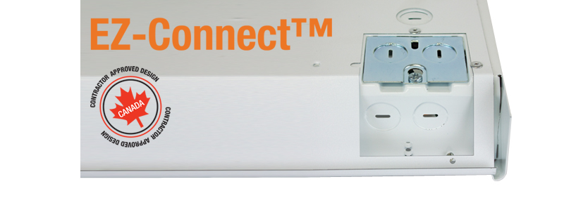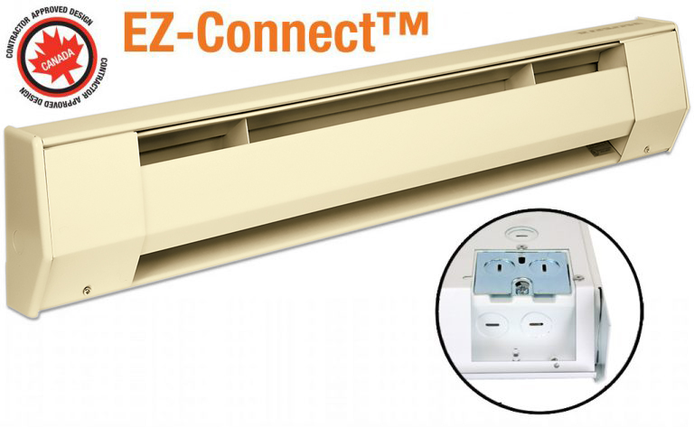NEW! EZ-Connect™ a Quicker installing back-wire electric baseboard heater with integral strain relief design with the innovation of the all new Quicker Installing back-wire design, contractors all agree; installation has never been faster! This new design allows the convenience of wiring the heater prior to mounting onto the wall. Simply make the electrical connection, secure the back-wire cover plate with the integral strain relief onto the back of the heater and then mount the heater onto the wall. It’s that easy! No need to remove the front cover during installation. This cuts installation time in half.