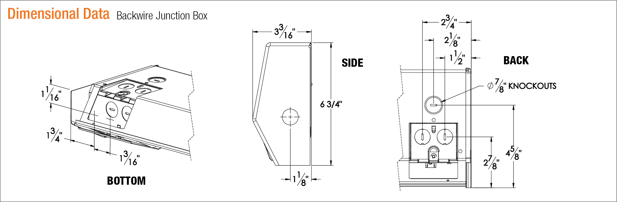 • The heater shall have a 44 cubic inch junction box at both ends, furnished with five 1⁄2″ knockouts located on the back, bottom, and side.