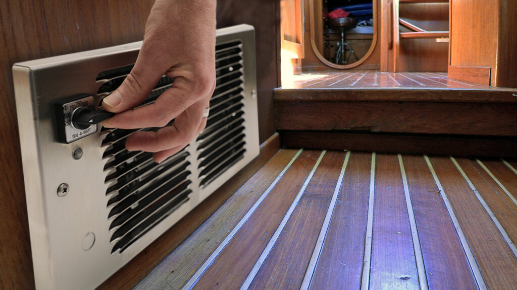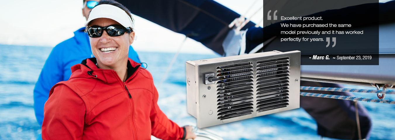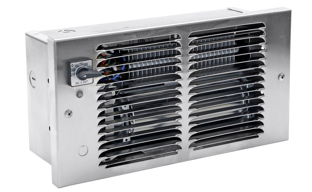 A heater unique to King, featuring the ability to choose the wattage needed. A heavy-duty industrial switch mounted on the grill allows quick selection of up to 7 different heat settings. Use where higher wattage is not required during unoccupied periods. Typical installations are toll booths, motor home/RVs, pleasure craft and cabins. By providing air movement and dry heat, musty, moldy odors are reduced and interior fabric life is maximized. Utilizing a lower wattage provides winter freeze protection with the bonus of energy savings. During RV use, the heater load (Amperage) can be adjusted to the receptacle or cord size. This prevents damage to plugs and receptacles due to overloading. During lay-up periods, wattage can be adjusted to the correct level. Quiet operating tangential cylindrical (squirrel cage) blower and commercial grade element make the Dial-A-Watt™ the heater of choice for people on the move.