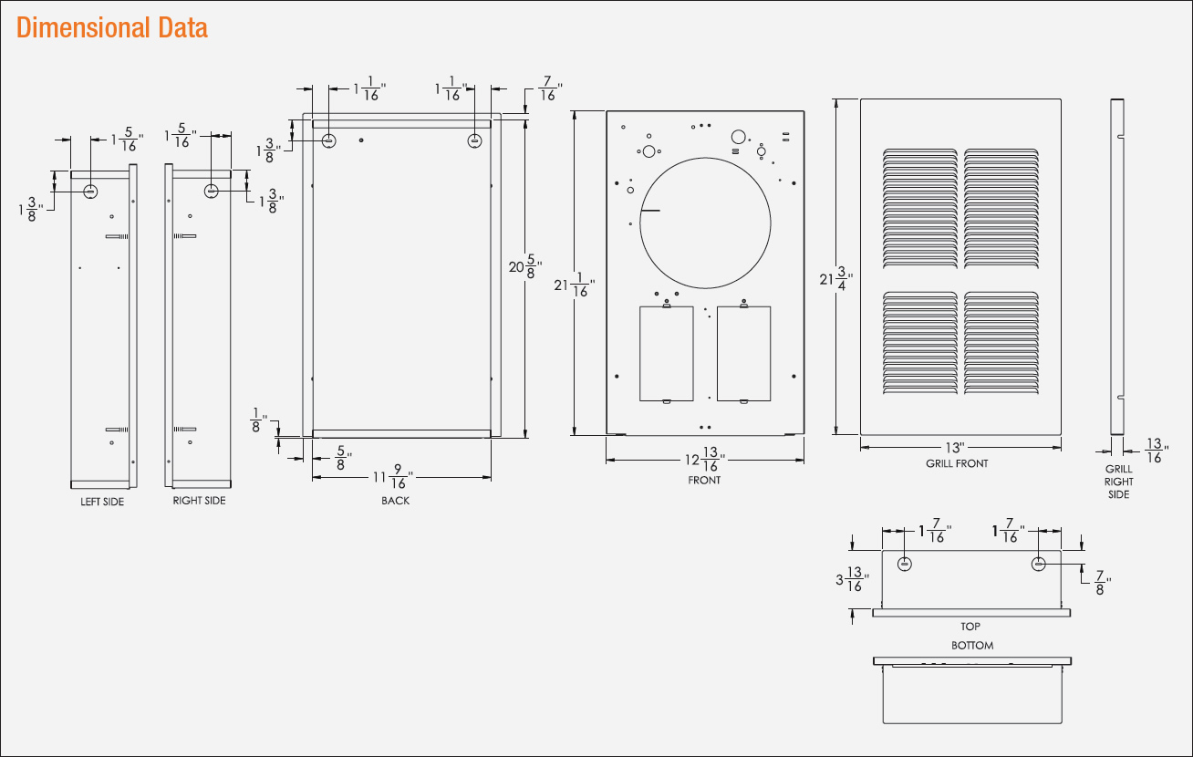 Options: 1-Pole or 2-Pole built-in thermostat 45-80°F operating range, retrofit grill, and surface wall-box.