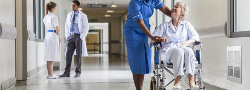 The EFW-LD heater was designed specifically for Assisted Living Facilities, Daycare Centers, Memory Care Centers, or any facility that has high risk occupants, where temperatures should not exceed 120 degrees. These facilities can benefit from replacing high density heaters, especially where required by code to keep their patients safe. Heaters can be ganged together to work on one thermostat if higher output is required.