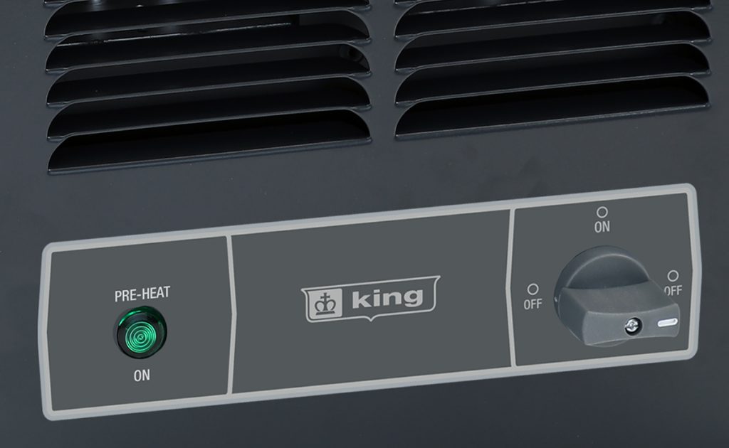 Features a provision for adding an optional 24V thermostat for remote temperature control, making it compatible with 24V wifi thermostats, like the Nest. Also includes an integral fan delay to dissipate heat from the elements during the cool down period, maximizing the heat exchange in the room. King’s exclusive dual Pic-A-Watt steel fin elements allow customers to select from a range of wattage options, tailoring the heater to an area’s specific heating requirements.
