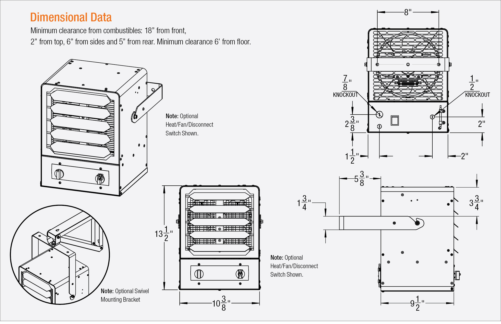 An optional field-installed 3-position switch (Heat/Fan/OFF-DISCONNECT) is available that can be easily added if needed. Designed for rugged performance, the flow-through design efficiently moves air by pulling air from the back and discharges it out the front, easily heating a large space.