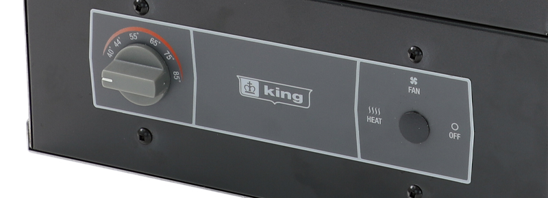 All models include a standard built-in thermostat with easy-connect terminal block to field convert to a remote line voltage thermostat.The integral fan delay continues to dissipate heat from the elements during the cool down period, maximizing the heat exchange in the room. King’s exclusive dual Pic-A-Watt steel fin elements provide a range of wattage options, letting you tailor the heater to the specific requirements of any area.