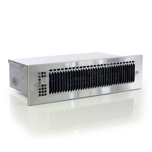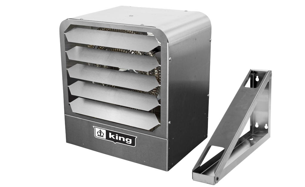 KBS unit heaters are specially constructed for heating of, and freeze protection in, dirty, dusty or corrosive areas requiring periodic washing or hose-down. Typical places of use are: waste water treatment plants, car/truck washes, cement plants, steel mills or such, canneries and dairy facilities, ship and marine docks, fish processors and load banks for generators. The heater is constructed from 20-gauge type 304 Stainless Steel and elements making it extremely corrosion resistant. The N.E.M.A. 4 wiring compartment is sealed and gasketed making it water tight. All optional control components are U.L. listed for use in N.E.M.A. 4 enclosures.