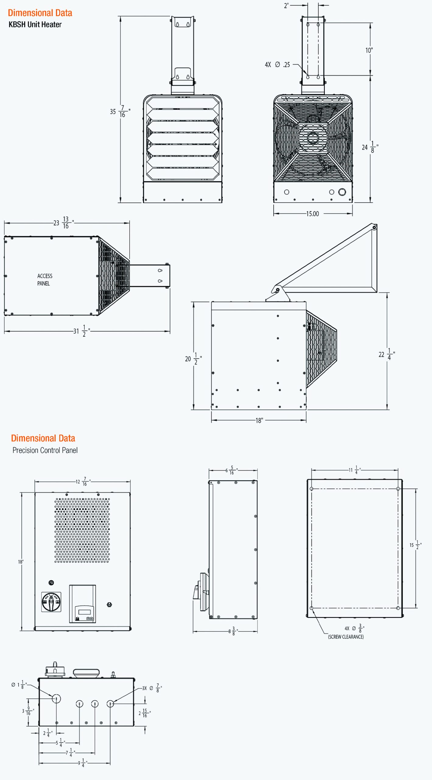 Auxiliary Temperature Control Panel: Mounts outside the heated space increasing the heater’s durability and longevity by protecting the electronics and mechanical components from extreme temperatures and potential damage.