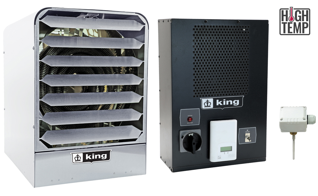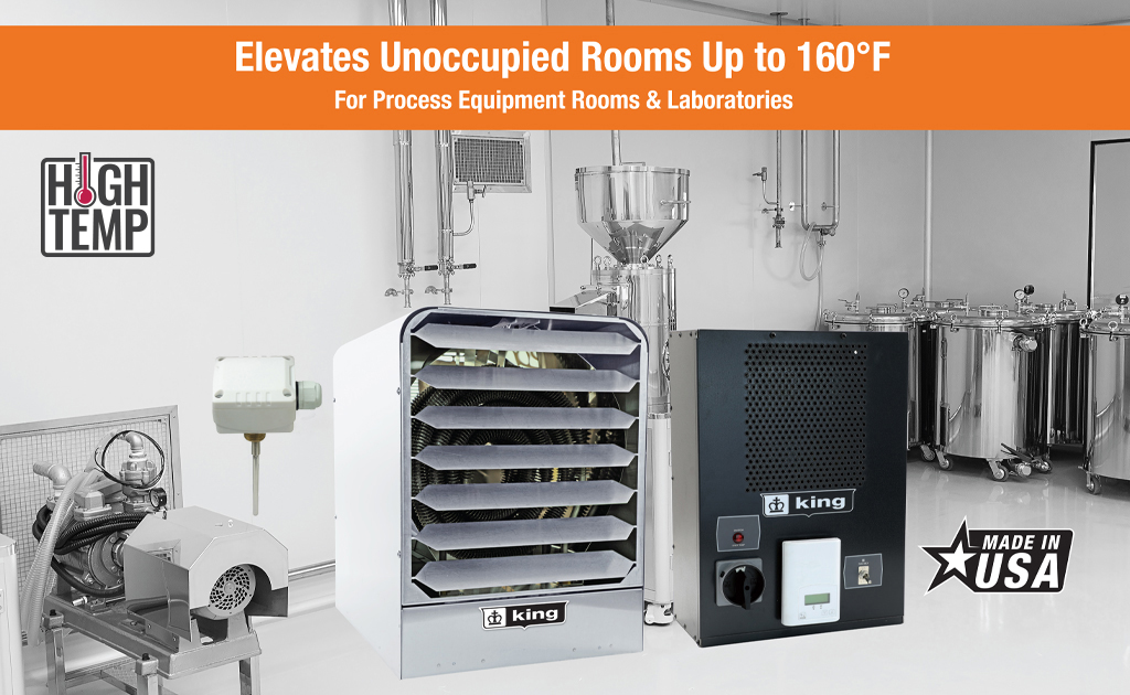 The KBSH is a stainless steel high-temperature unit heater designed for harsh environments and engineered to elevate unoccupied room temperatures up to 160°F. Features a remote temperature control panel that gets mounted outside of the heated space and a temperature probe that mounts next to the heater. Designed for Process Equipment Rooms & Laboratories.