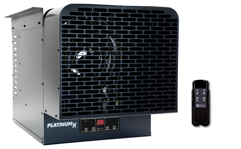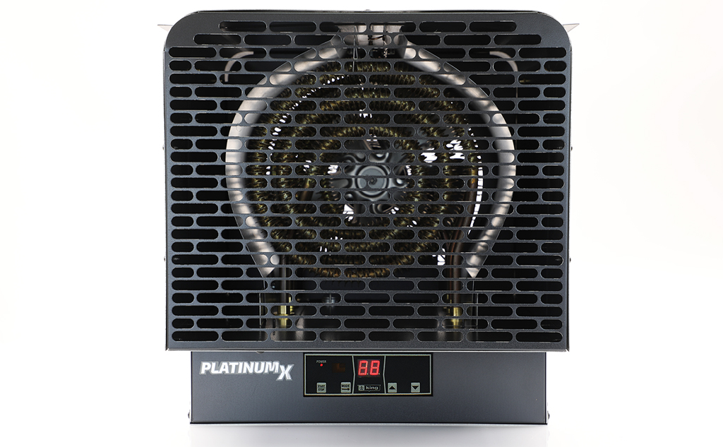 Spiral finned steel elements and high CFM ensure even air distribution producing cooler element operation, prolonging heater life. By combining the highest quality components, with a dynamically balanced fan blade, the KB PlatinumX unit heater will provide years of trouble-free service.