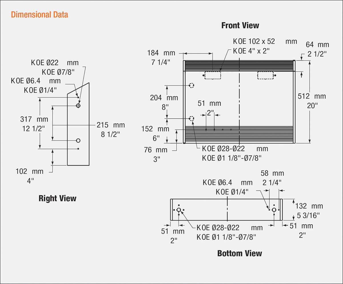 Construction: 20-gauge steel cabinet. 16-gauge steel front cover. Extruded aluminum bar grilles prevent insertion of foreign objects. Front fresh air inlet; top warm air outlet. Clean back available (-BD). Linear high-limit temperature control with automatic reset.