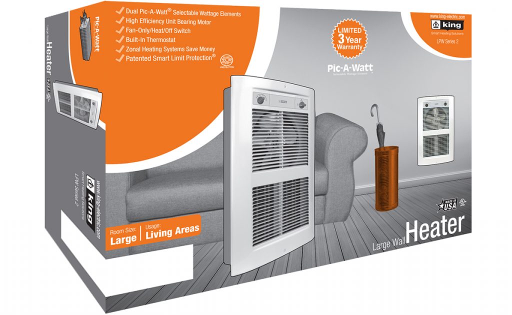 Featuring a modern architectural design and King’s patented Smart Limit Protection®, LPW ComfortCraft offers refined comfort for making Residential and Commercial spaces more comfortable. King’s exclusive Pic-A-Watt element, allow customers to select from a range of wattage options, tailoring the heater to an area’s specific heating needs. Also features a 3-position switch (Heat/Fan Only/Off-Disconnect Switch) and a built-in thermostat.