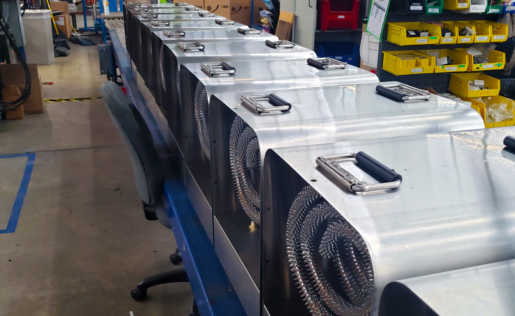 King’s PKBS Stainless Steel Portable Unit Heater is specially constructed for heating of, and freeze protection in, dirty, dusty or corrosive areas requiring periodic washing or hose-down. Typical places of use are: wastewater treatment plants, car/truck washes, agriculture, ship and marine docks, fish processors, and military applications. The heater is constructed from 20-gauge type 304 Stainless Steel and elements making it extremely corrosion resistant. The N.E.M.A. 4 wiring compartment is sealed and gasketed making it watertight. All optional control components are U.L. listed for use in N.E.M.A. 4 enclosures. It is the best heat source to assist in dry-out applications where dry electric heat is preferred over propane or kerosene space heaters. In addition, electric heat has no odor, flame or carbon monoxide. The high CFM and low temperature rise are also key features to make the PKBS the best solution for temporary large capacity heating applications.