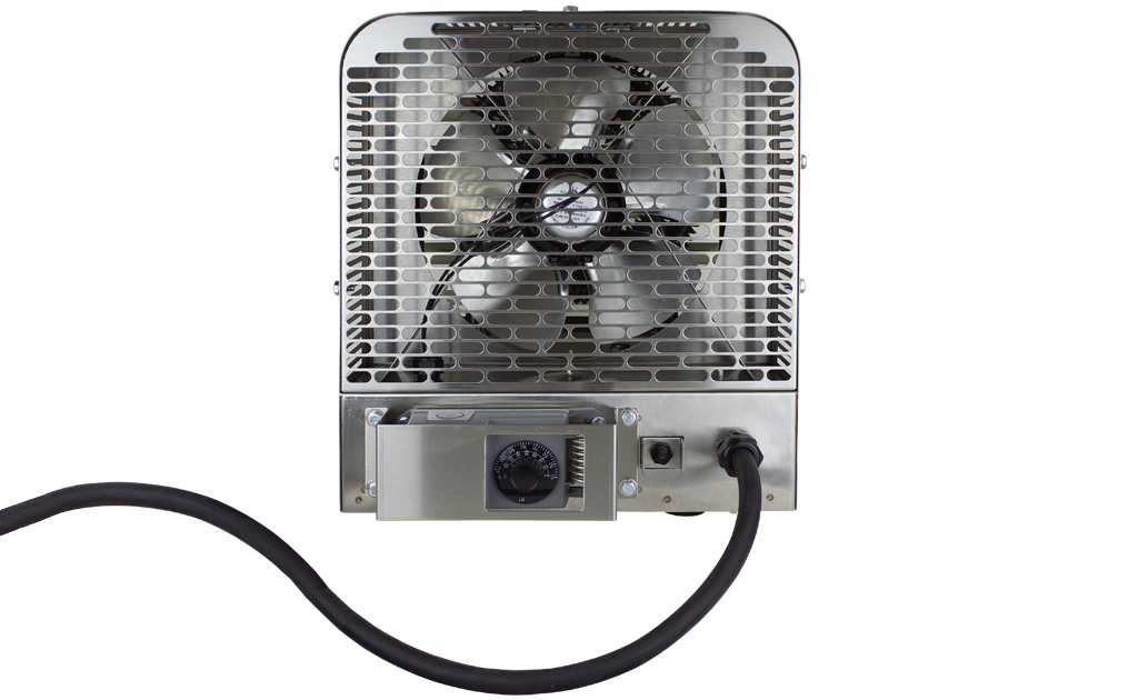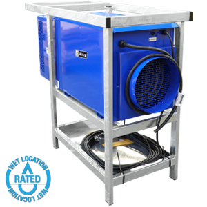 These portable stainless heaters are specially constructed for heating of, and freeze protection in, dirty, dusty or corrosive areas requiring periodic washing or hose-down. Typical places of use are: wastewater treatment plants, car/truck washes, agriculture, ship and marine docks, fish processors, and military applications.