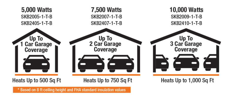 The SKB compact heavy duty unit heater is designed for use as primary or supplemental heat sources in large or exposed areas, including commercial stores, workshops, barns, storage shed and garages to prevent freezing. Spiral finned steel elements and high air volume (CFM) ensure efficient heat exchange producing cooler element operation, prolonging heater life. By combining the highest quality components with a dynamically balanced fan blade, the SKB unit heater will provide years of trouble-free service. Includes both a power on indicating light and a red caution light that comes on if the heater stops due to the over temperature limit tripping. A universal wall/ceiling bracket provides for quick and simple installation. The built-in thermostat turns the heater on and off to maintain the desired room temperature.