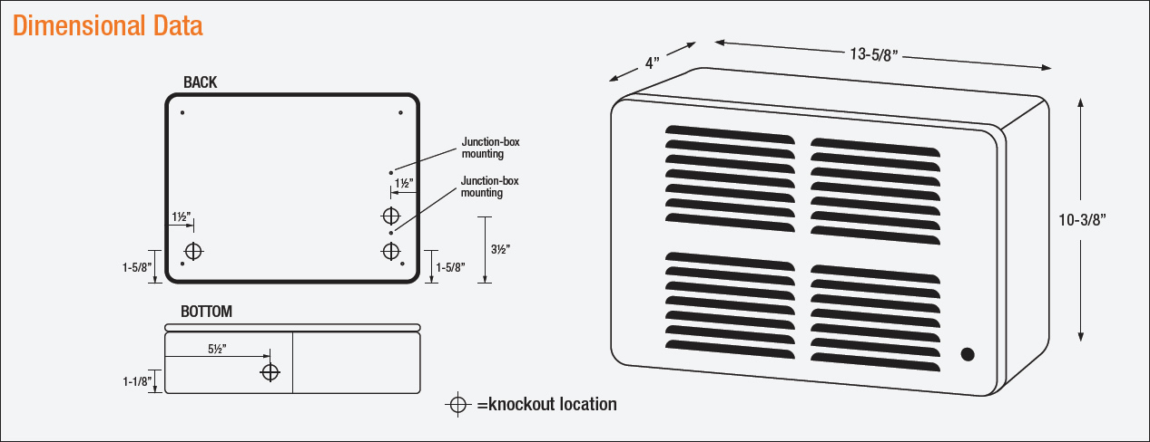 Specifically designed as a space-saving replacement for baseboard heaters, allowing you to reclaim up to 8 linear feet of valuable wall space. The unique slim surface-mounted wall can allows the heater to be mounted directly in contact with the finished floor (unlike other fan heaters that require to be installed at least 4″ above the floor).