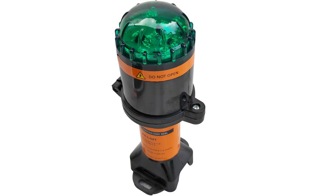 The SRK18 is an above-insulation, lighted end seal kit with a light that indicates voltage at the end of the circuit. It is designed for use with the SR industrial parallel heating cable. It is approved by CSA for use in hazardous locations. The SRK18 is mounted on the pipe and projects through the thermal insulation and cladding for ease of maintenance. Once installed, the end seal is easily reentered for maintenance and the heating cable can be accessed without removing the end seal. The LED indicator light provides excellent visibility.