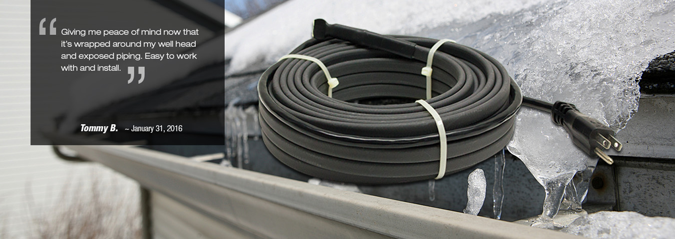 Self-regulating heating cable, often called pipe trace cable, automatically adjusts heat output based on surface temperature. Ideal for freeze protection and low temperature process maintenance such as water pipe heating. Stops Pipe and Valve Freeze Down to -40°F.