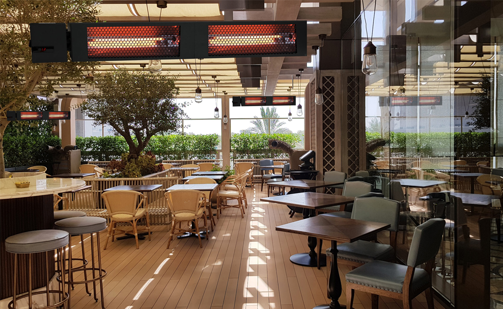 SmartWave® carbon fiber radiant heaters have the ability to transfer heat to a person or object without heating the surrounding air. Featuring CarbonIQ, carbon fiber elements, SmartWave produces high-output medium-wave infrared heat energy with a soft visible orange glow. With less intense light than short-wave infrared, SmartWave heaters are a great choice for outdoor patios or commercial applications such as restaurants, where high heat is required but less visible light is desired.